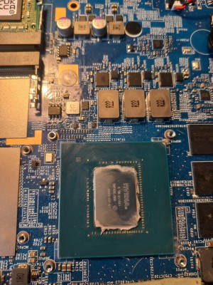 Вот фото этого места, я чип выпаял, там даже одна дорожка поджарилась. А видео чип никак осликом не протестить? При запуске проце и видео тёплые, перегрева вроде нет. Ещё вроде напруги на всех дросселях есть, а вот на usb нет напряжения. А пост карта это жёлтая такая, мини pci? Я вот думаю может он матрицу не видит, может что то с ней.