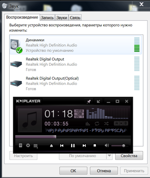 и индикатор дёргается справа внизу (рядом часы) когда песня играет КМ-плеером.