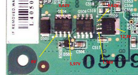 Уже такое было, когда D504 был в обрыве, при первом ремонте. У этой карты проблемы с питанием были наверное с "рождения", я её купил три года назад уже с меняными транзисторами.