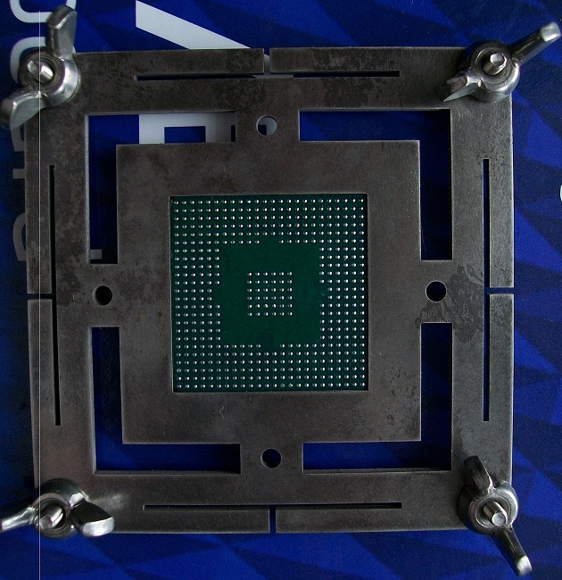 Sseries, Могут и толщина у них разная бывает, ты чип как крепишь, а трафарет? Все ело в том что по технологии реболинга, чип устанавливается в стол для реболинга, зажав губки стола ты получаешь площадку для установки трафарета. Установив и прикрутив трафарет, ты спокойно можешь его греть. Да собственно на другом форуме тебе косвенно подтвердили мои слова, что реболить проще и удобнее шарами, не будет подобных вопросов возникать.  |
