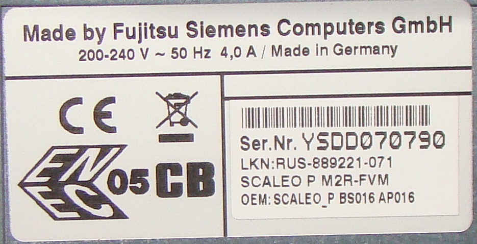 Компьютер белой сборки Fujitsu-Siemens SCALEO P - Athlon 64 3500+ 2.2 GHz был куплен в январе 2007 года. Операционная система Windows XP SP3
