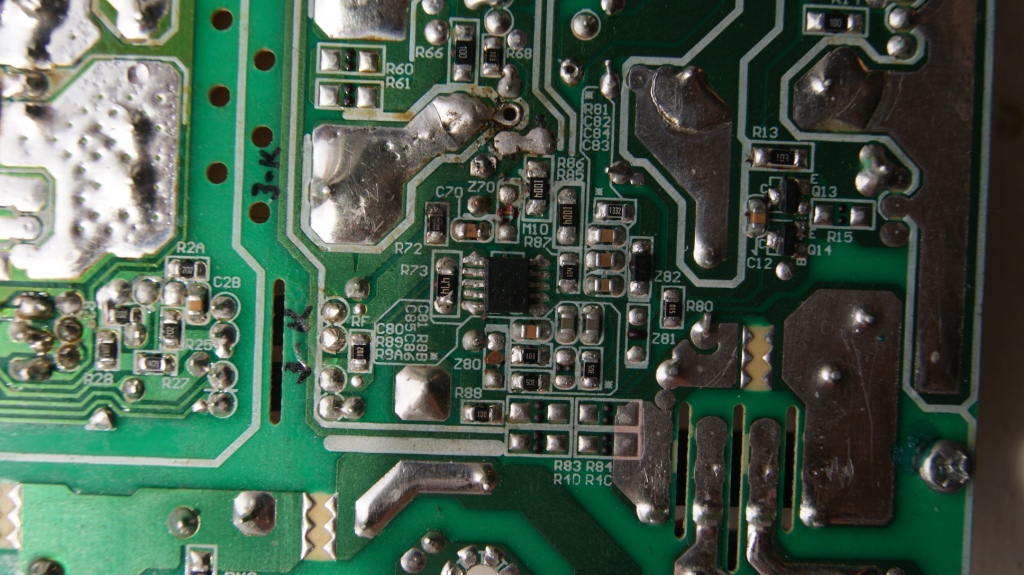 Пришел на ремонт БП, не работает. Дежурку восстановил. Коротят все стабилитроны вокруг микросхемы R8CB05B0, два транзистора 9N50C, сопротивление 3,68 Ом пробито,... Не могу найти похожую схему БП, или хотя бы даташит на микросхему или ее аналог. Не могу определить сгоревшее R72.