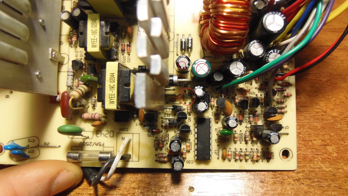 Косметический осмотр ничего не выявил: дутых конденсаторов нет, сгоревших элементов тоже. Подозреваю сухие электролиты. Схемы однозначной не нашел, по какому-то 300-ваттнику похожему увидел оптрон, но не проверял. С удовольствием заменил бы конденсаторы превентивно, но нужно понять, какие :-) Без схемы менять тупо все, что рядом с дежуркой - как-то неправильно..
