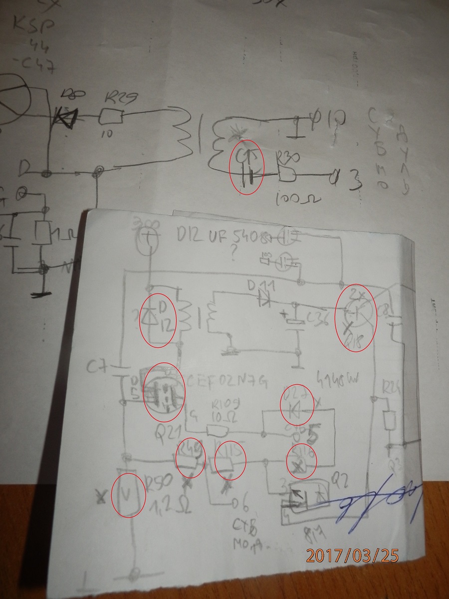 Всем привет. помогите разобраться со сгоревшими элементами . схемку нарисовал есть фото с обзора но там всё равно видно не очень.