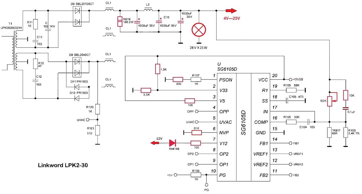 | Я ошибся: оказывается я отремонтировал не Linkworld, Patriot A400-K. Ъто был резистор R23 1,5 кОм, а я поставил 27 Ом, как R27 по схеме Linkworld. Хорошо, что ничего не сгорело. Перепугал платы. |