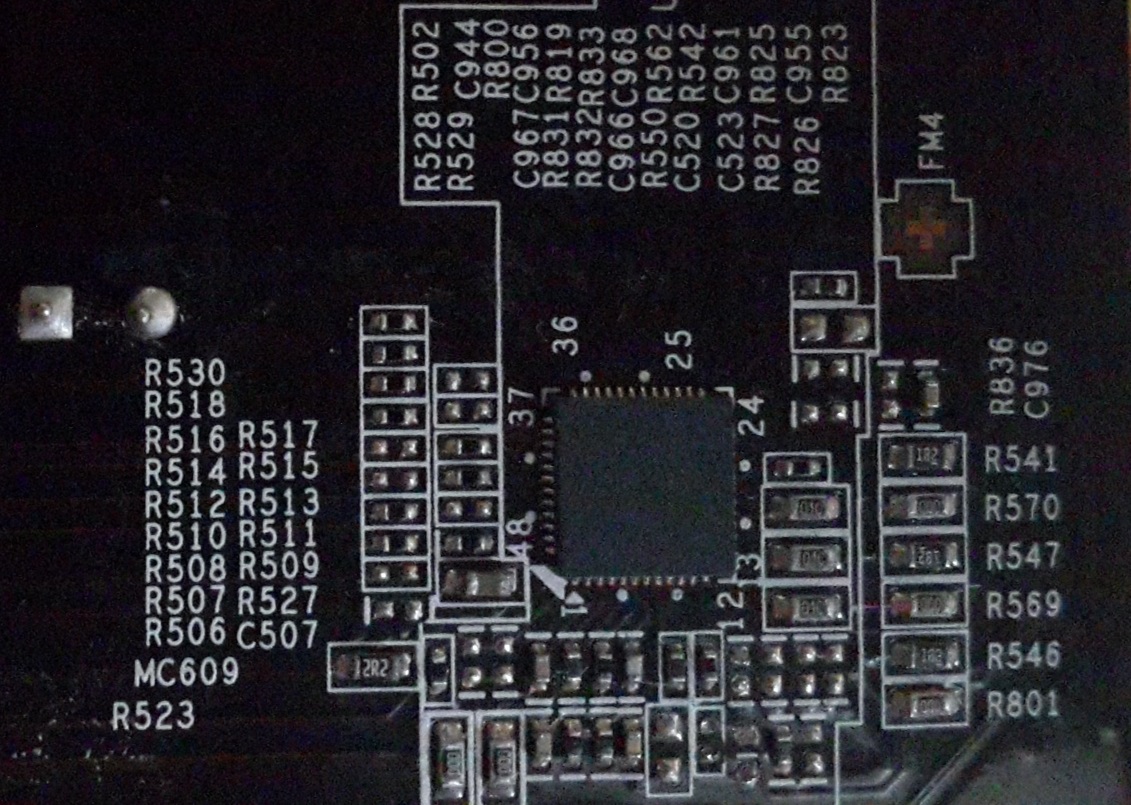 В обвязке контроллера фаз питания(UP6219AK) отбиты следующие элементы C523,C520,C961 (см. фото)