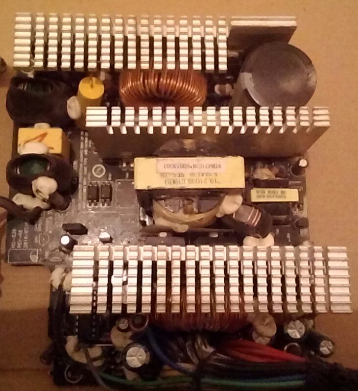 | А схемы на этот БП где найти? Взорвались обведённые транзисторы, так же сгорели в обвязке резисторы и диоды, полевики 11N60C3, причиной было насекомое, замкнувшее своим брюхом ножку дросселя APFC с проходящими рядом дорожками управления... |