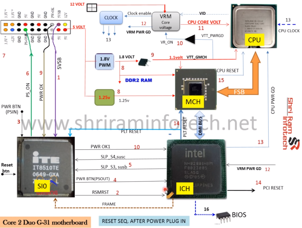 Взять даташиты на шим контроллеры имеющиеся на данной материнке и их изучить найти ноги Power goot у каждого и посмотреть на них напряжения и сравнить с активными уровнями,указанными в даташите.Убедиться что эти сигналы доходят до адресата.Если всё ок то придётся менять хаб,что для этой платы нецелесообразно по финансовым соображениям.Если есть донор и собственное оборудование тогда ещё можно повозиться.