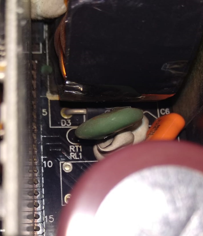 Если не затруднительно и ещё есть возможность, подскажите, пожалуйста, маркировку RT1? Видимо термистор. Или, возможно, подскажете параметры данного элемента для БП подобной мощности? Данному джентльмену откровенно говоря не очень хорошо и требуется замена, заранее спасибо