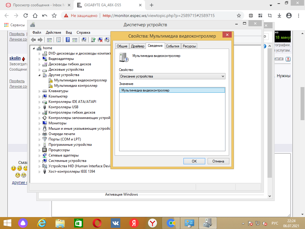 | Нормально было только в диспетчере устройств, а после установки перемычек вот это и имею. Я уже и Win8 несколько раз переставлял и на материнке к разьему AUDIO подключал специальный кабель с разьемыми для передней панели ( наушники и микрофон). В диспетчере все равно проблемы. А эта материнка скольки разрядная 32 или 64. Я это к тому , что ставил Win8 и ту и другую. Ничего не менялось. |