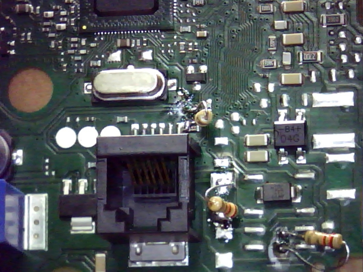 Имеется данный аппарат. После грозы перестал работать. Вышел из строя блок питания и 3 резистора на плате базы. Блок питания бел отремонтирован, а вот с резисторами проблема. Два из них не определить никак не получилось, т.к. обгорели надписи на них. Полазив в интернете предположил, что они на 2,2 Ом.(на фото номер 1 и 2) Третий резистор был 472 Ом.(на фото под номером 3). Дело в том, что телефон все равно не работает.Когда выключенную трубку ставишь на базу она включается и пишет надпись "Базовый блок". Регистрация трубки не проходит.Прошу Вашей помощи заранее спасибо.
