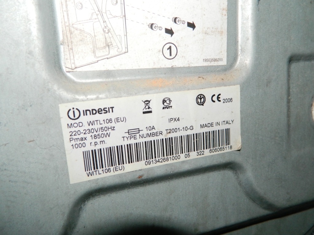 Украина, Киевская обл. СМА indesit witp 82 code:21501023001 s/n:1036602972