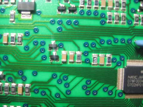 Вобщем благодоря макросъемке на фотоапарате были опознаны два трупа-сопротивления, под позицией 1 сопротивление 272 (цифры которые были нанесенны сверху), под позицией 2 одно сопротивление 102 а второе так и не опознано!
