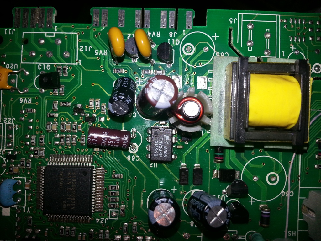 2 Для тестирования живой ли процессор, можно вместо БП, подключить +12 и +5 вольт от компьютерного блока питания, подав его на С65 10V 680mF и С64 25V 100mF?