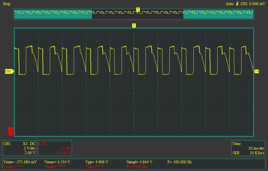 Вобщем до r218 сигнал с делителя доходит адекватный и форма и частота, как только соединяешь r218 с процем (29 пин), частота становиться 100 Гц, форма мусор.