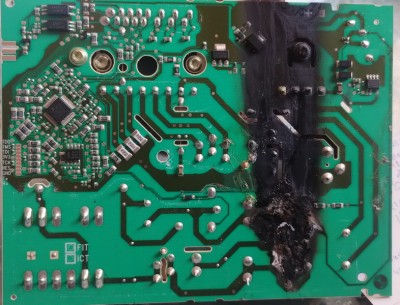 Надо фото платы со стороны дорожек, а то выгорело прилично.