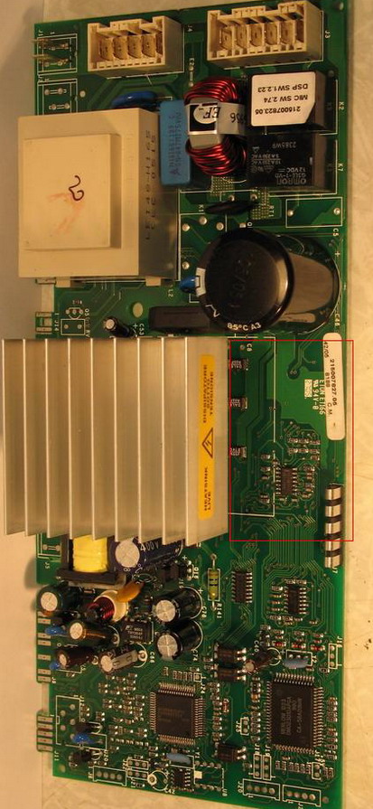 | Всем доброго времени суток. Имеется СМА Ariston AVL 109 R S/N 080297000905. На модуле написано следующее: code2100916604 sw:9.21.0 Вкрадце рассказываю суть проблемы: при включении любой пограммы замок блокируется. На выборе программ горит выбраная программа. И всё. Перед этим восстановил сгоревшие дорожки под сетевым конденсатором, заменил сгоревшие сопротивления(примерно те что на картинке). На симисторы включающие клапана на заливку воды не приходит управляющее напряжение с процессора. Сигнал о блокировке двери доходит (индикатор открытой двери перестаёт моргать). Где и чего искать? |