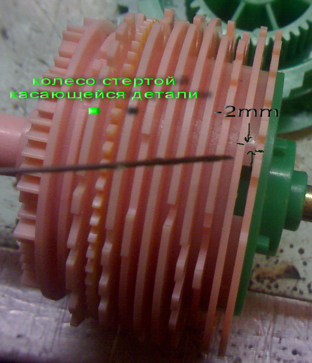 Имеет 2е полных программы,от 1 до 8-,стоп. и От 8 до 15 стоп.Начиная стирать от 8 выполняет все текущие действия как положено ,без проблем,доходя до 13 пункта,точнее до 13,5 останавливается и ни чего не происходит больше,по тому ,что осттанавливается двигатель,вращающий командоаппарат.Если ручку командоаппарата перешелкнуть на 1н пункт далее,то машина удачно продолжит,и завершит свою начатую программу.Перебрал и перечистил командоаппарат,ни чего это не дало. Есть подозрения,что стерта одна из деталей ,смотрите фото. Деталь была заостренная , и по мере износа,стерлась и теперь не точно попадает в свое место.Именно на 13 пункте на командном колесе есть зазубрины,в которые попадают толкатели контактных групп,и везде на командном колесе они находятся на нормальном расстоянии,кроме п.13.Там расстояние порядка 1-1,5мм.и не устев контактная группа включиться,не включившись,останавливается двигатель без дальнейших действий.На фото,так же видно, что 3 замкнутые контакты являются перемычками и к ним соединяется разъем с 4 я проводами,это 1н полюс двигателя, а второй-включается в зависимости от хода действия,то с 6-5,6-4,6-7,6-8 а от 6ого идет перемычка на контакт под 7ым,тот периодически замыкает (гр. контактов)с конт. ПОД 8ым. Вот об этой гр. конт . и идет речь. В нужный момент на 13,5 пункт,- разомкнуто все!!! И нет напряж. на двигатель. Может у кого есть мысли по этому поводу,кто то боролся и как победил???