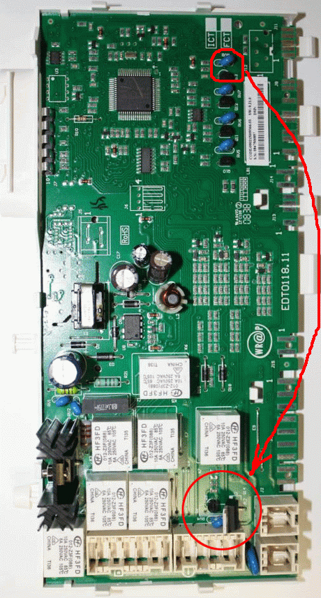 | Здравствуйте. Сейчас вопрос в следующем. Машинка остановилась на режиме полоскание, без индикации ошибки. Выключил её включил заново замок не блокируется. Разобрал его замок исправен. На плате управления выгорел семмистор управляющий замком, под рукой ничего не было выпаял такой жде с самой платы. цепь замкнулась замок сработал. Тишина. Посмотрел щётки, они стерлись осталось примерно по 5мм на каждой свободного хода пружины нет. Заменил их. Тишина. Проверил режим отжима и Слива они работают, только через паузу. остальные режимы молчат. Заменил термодатчик На сопротивление 200 ом Ожили режимы, но не на долго минут на 5-10 тен не греет это и понятно. Далее выходит ошибка F03. сам датчик исправен 20 кОм. пока всё заранее спасибо!!! |