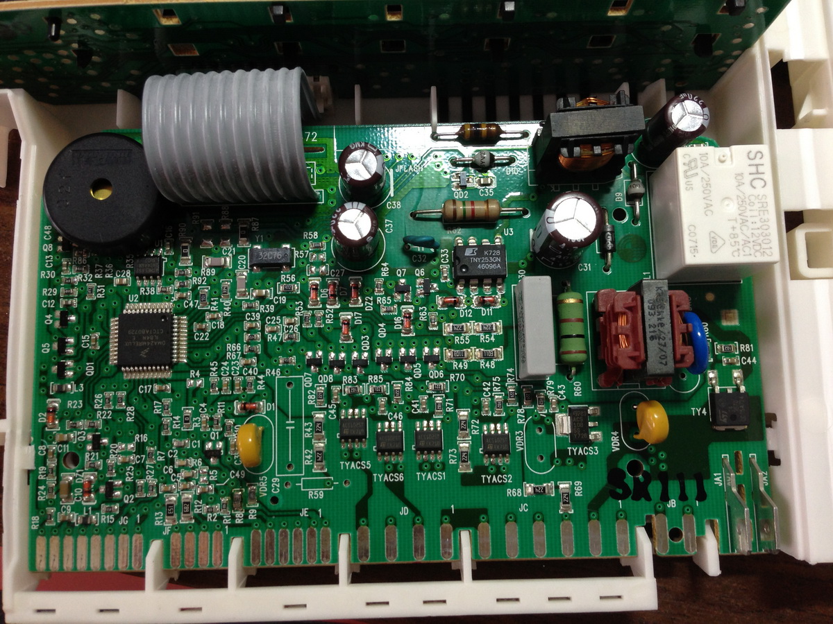 теперь уже надо её запускать и искать причину откуда вода проникает. и где у ней на плате электроники семистор который рулит оборотами помпы? ведь 50 ошибка указывает на него или на сгоревшие мои резисторы от датчика тахо. |