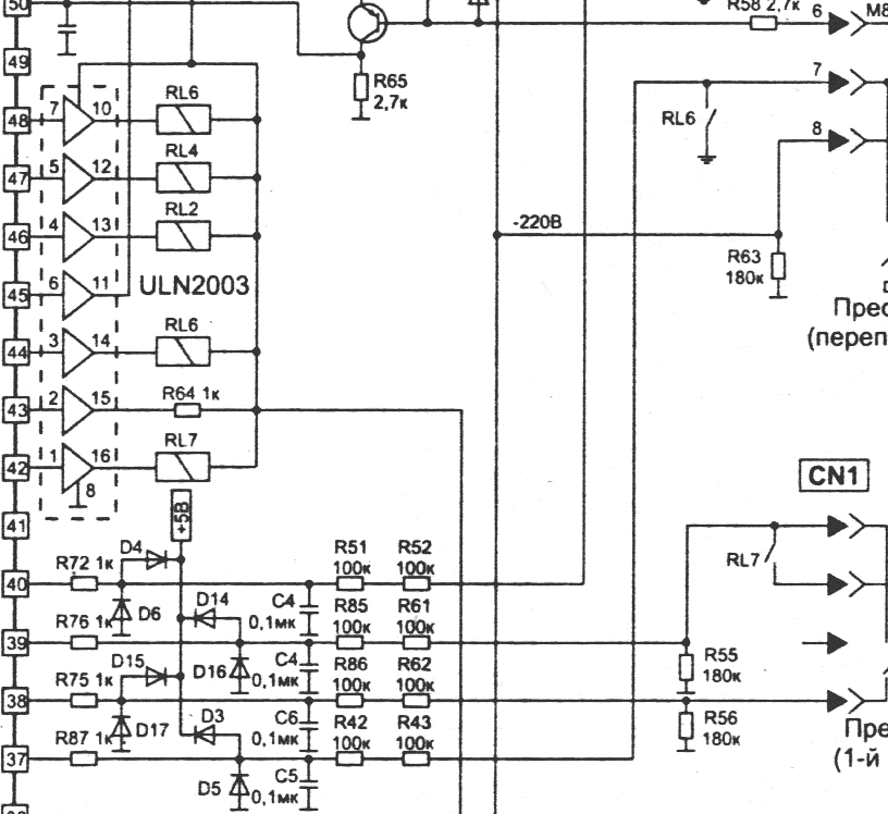 | sdd писал: | | Dima700926, про диод имел ввиду стоит паралельно обмотке- реле а не помпе. | ну вот и класика получаеться, на реле где контакты замыкаються должно быть 220в, можеш лампочку повесить и смотреть есть или нет, от обмотки реле вычислиш путь к процу, на проче должна быть 1 или 0 , тоесть напруга(каманда) на реле, полюбому чтото стоит между процом(ногой) и самой реле, иначе не хватит для команды |