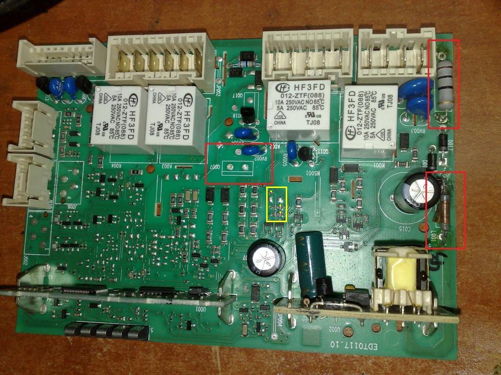 Добрый день! Стиралка CMA indesit iwsc 5085. Плата TCR947. Code:215010230.01 S/N:1031406126 DSP. нужна помощь в определении номинала резисторов. На фото отметил желтым цветом!. За ранее спасибо за помощь! улыбка