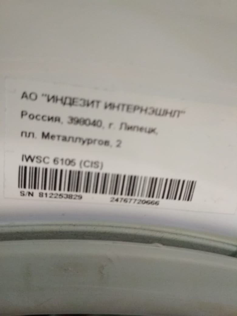 Добрый вечер. СМА Indesit IWSC6105 (CIS) s/n 710243340 24767720097