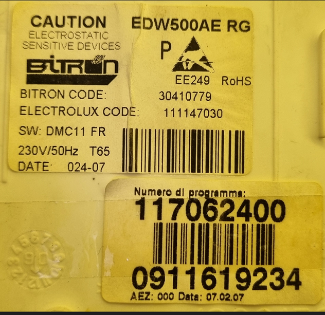 Добрый день. ПММ Electrolux ESL94300LA работала. резко остановилась и все потухло. Вердикт - на плате выгорел VIPER16 и дорожки к конденсатору. Дорожки восстановил, купил новый VIPER16. Подключаю вообще признаков жизни нет. Планирую новую купить новый блок управления ( Electrolux 140059122121). Теперь нужна прошивка для нее.