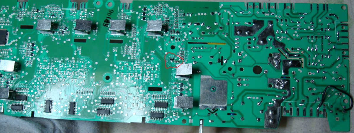 Блок после ремонта, со слов сгорели резистор R?2P и диод D11P (непонятно как?) и дорожка на плате, были установлены резистор 1,5к и диод 1N4148, дорожка восстановлена проводком, после этого перестала включаться блокировка люка.