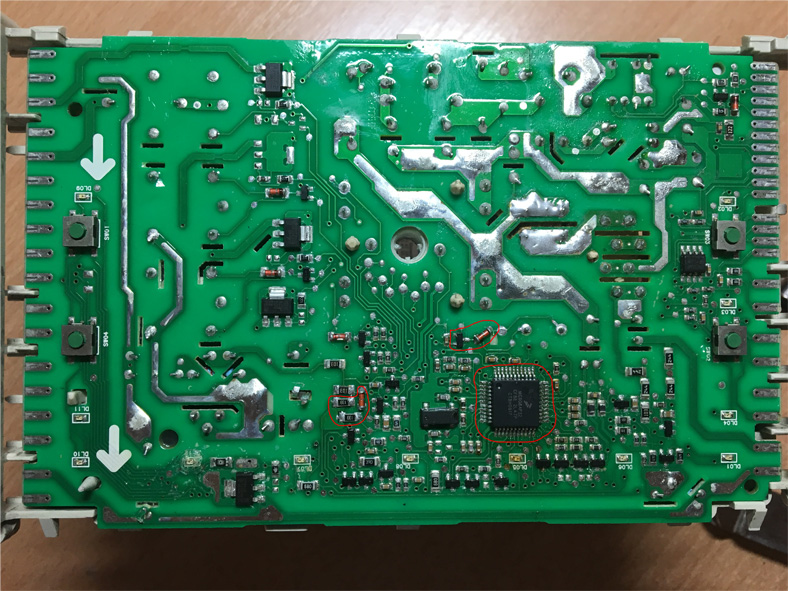 И з того что пришлось заменить это: транзистор A6J(DTA143), 2 диода 1N4148, 2 резистора 13кОм(обведено на фото).