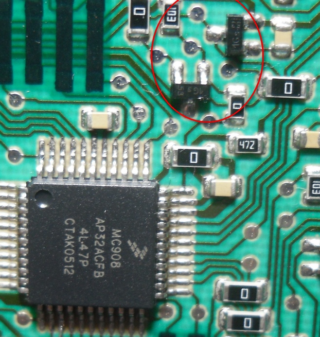 Выгнила часть платы. Там должна была быть цепь тахо. Машина крутит только в одну сторону и с неадекватными оборотами. Прилагаю фото, там остатки ног от 1-2 смд элементов. Схем и фото в должно качестве не нашел. Может хто подскажет хто там должен жить. Реле и управляющие ими цепи до проца в полном порядке.