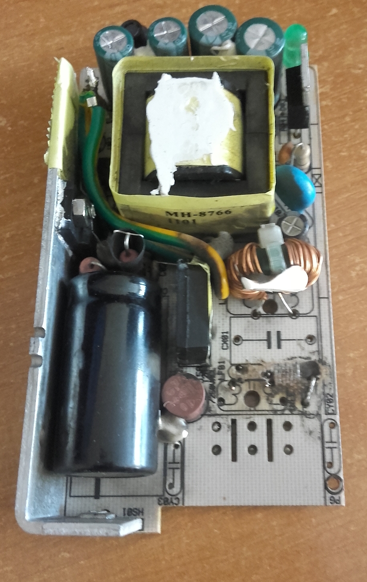 Тут наверное проще блок питания купить 24 вольта 2.5-3 ампера вполне сгодиться.Тут ему похоже 380 воткнули и возможно ещё транзистор с шимом гавкнул |