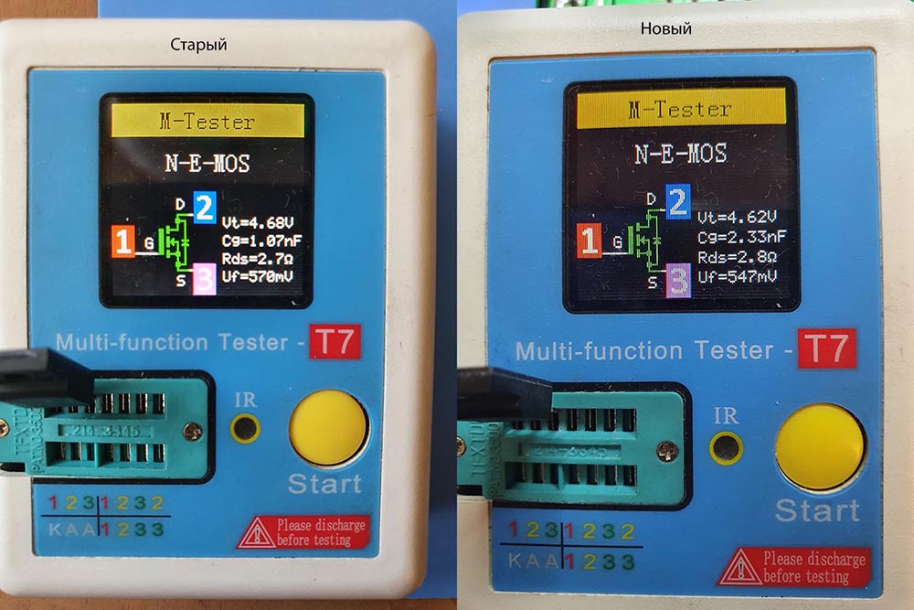 Полевик проверял всем известным универсальным прибором (см. фото), он определяется правильно. Для чистоты эксперимента нашел новый, не паянный. Прибор показал аналогичные данные. Заменил на новый - тишина.
