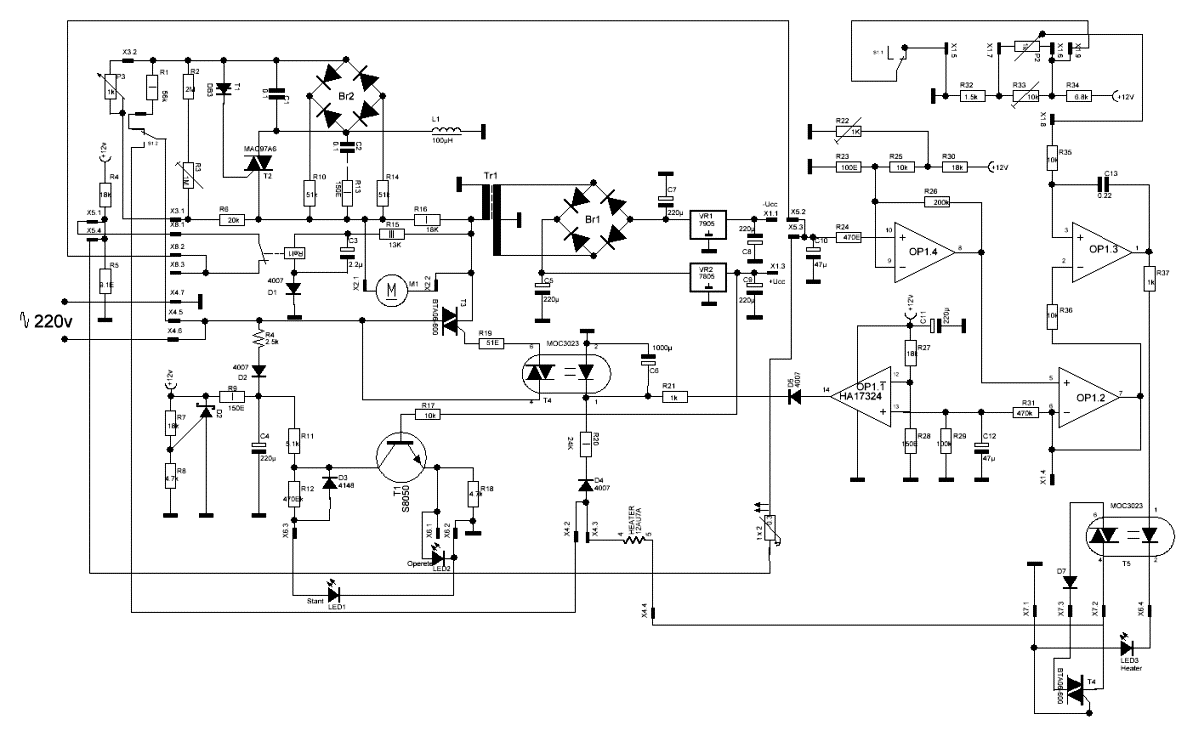 | Спасибо за схему. Два диода заменил два диода (прозванивались в обе стороны) но это не помогло((((. Остается прозвонить микросхему(HA17324), но возникает вопрос как?. Сам я не профессионал в радиоэлектронике. Знаю многое, но в прозвоне микросхем полный ноль |