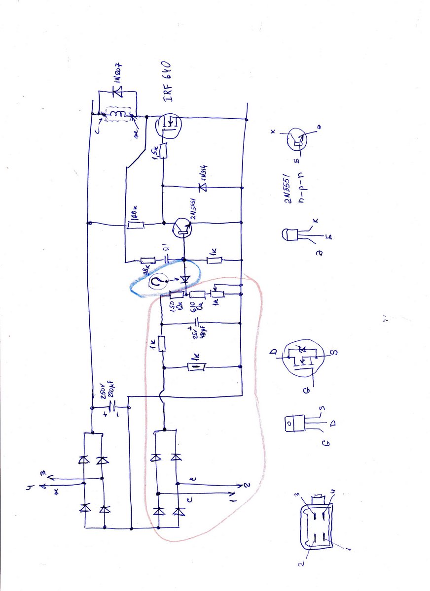 Схему срисовал с печатки и сразу возник вопрос, правильно ли с завода впаян диод (обведенный синим)? Если правильно то зачем тогда кусок схемы (обведенный красным)? | Не стабилитрон и не с завода, но на схеме неправильно включён диод. |