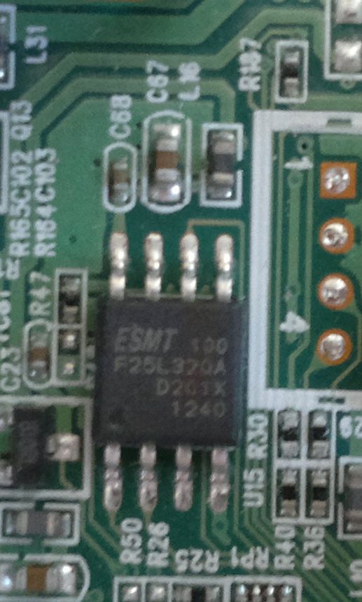 Неисправность - вышла из строя SPI Flash микросхема (F25L32QA), короткое замыкание по питанию 3 и 4 выводы. Именно родную не нашёл, купил аналогичную (W25Q32BV). Разница между ними - разный ток (F25L32QA) active current 35mA, (W25Q32BV) active current 4mA.