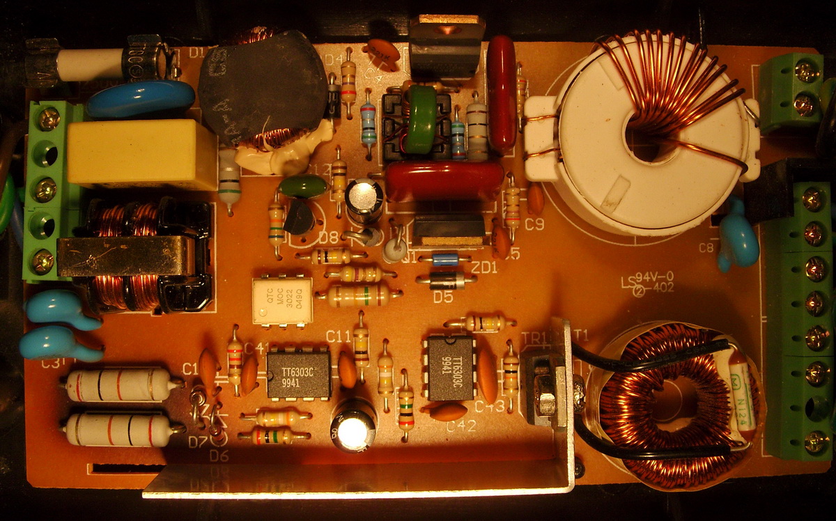 Есть торшер 10лет с двумя галогенками 300V/220W/ и 12V/50W/. Обе лампы диммируемые кнопками. Не сенсорами а именно микриками. 300V лампа на днях погасла. В интернете не нашёл ни похожей схемы ни названия ни даже внешнего вида своего торшера.Схему срисую чуть позже (работы много) фото платы выложу может кто уже сталкивался. На скорую руку поменял симистор BTB08-400CRG на BTA12-600CRG но не помогло. Изготовление и торшера и платы очень качественное явно не Китай.Сам я от паяния электроники немного отошёл хотя раньше Sinclair, ZX Spectrum на коленке лепил. А этот торшер мне по любому отремонтировать Необходимо. Заранее БЛАГОДАРЮ за любую помощь.