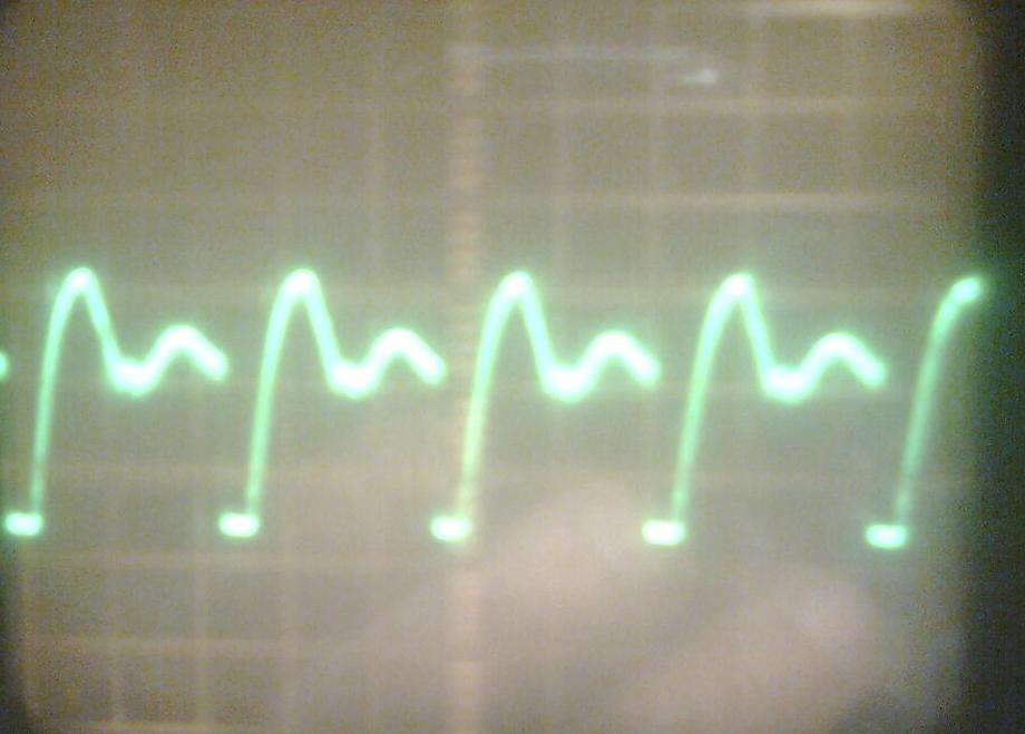 KRAB спасибо за "провода",поставил кт805бм вместо PZT2222,запаял разрез и совсем другой вид,здесь вроде должен быть срез - момент размагничивания транса,можно пробовать варить или ещё что не так?
