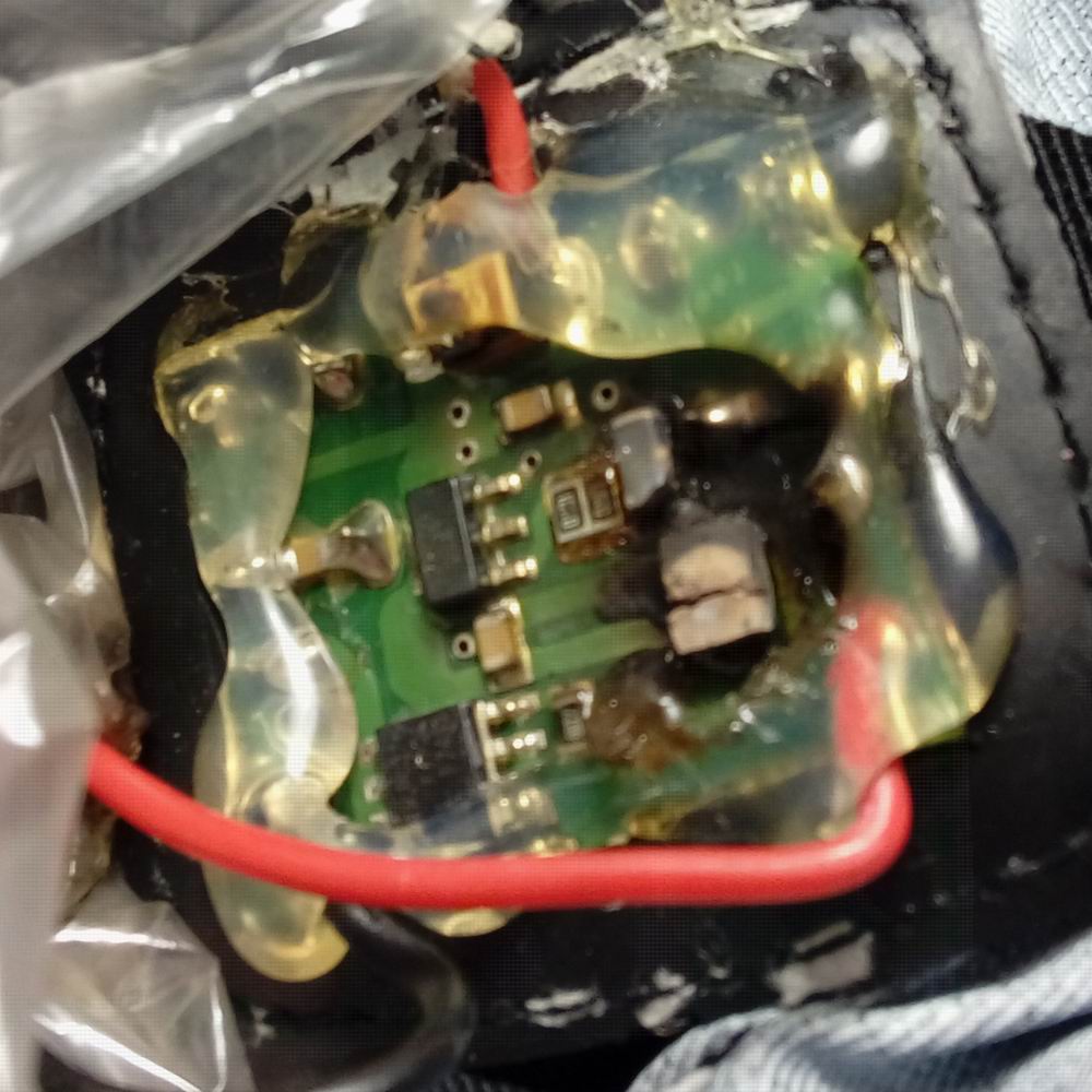 Перепутал полярность при пробном подключении одной из перчаток, что то щелкнуло и пошел дым. Сразу отключил. При правильном подключении больше не работает. Далее распорол перчатку, прикладываю фото микросхемы. Видно 3 сгоревших элемента, помогите определить, что это за элементы и где их купить?