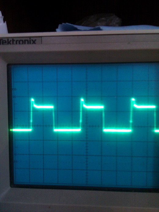 С выхода ПУ не четкие прямоугольные импульсы,с кривыми верхними площадками.фото1