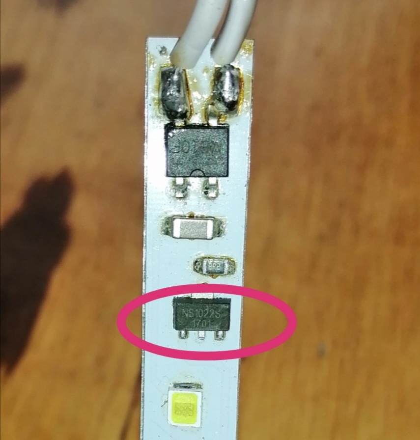 Всем привет. Помогите и мне пожалуйста. LED светильник в полнакала стал светить. Не могу найти что за деталь. Похоже какой-то стабилизатор. Обозначен как NS1022S. В поиске результата нет.