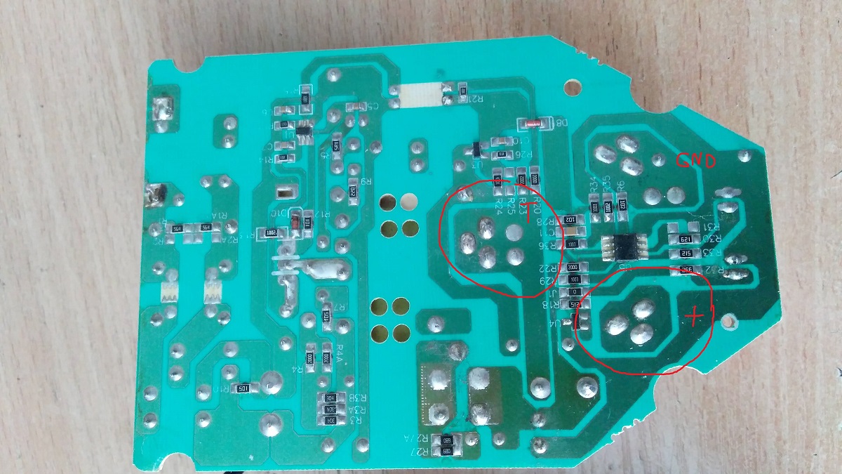 Всем привет. Принесли на ремонт ЗУ шуруповерта: пару минут заряжается (горит красный светодиод), а потом тухнет и крутит не долго. Когда разобрал ЗУ - очень удивился - минус на месте, а вот плюс не на + (этот товарищь вообще в воздухе висит), а на Т .