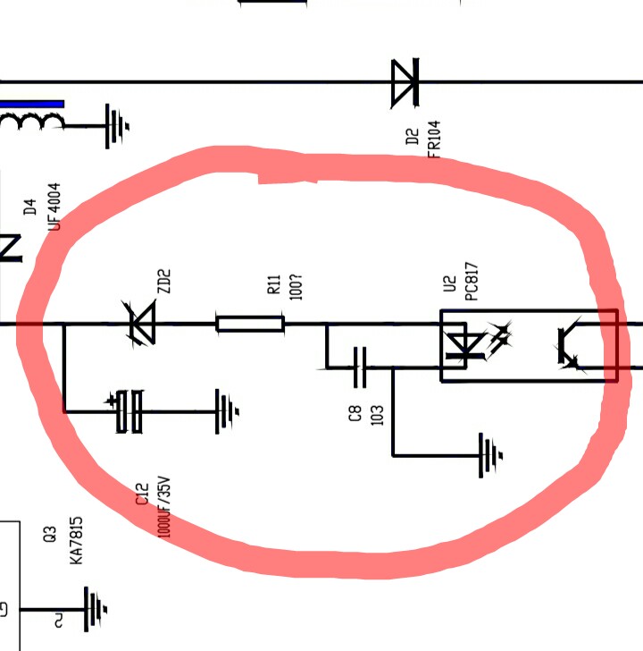 | sidim писал: | | Что с питанием на 7 ноге uc3843. Не ниже 16 вольт? ZD2 идет на R11, R11 на светодиод оптопары. | На 7 ноге напряжение скачет от 11 до 14 в. R11 питает lm393