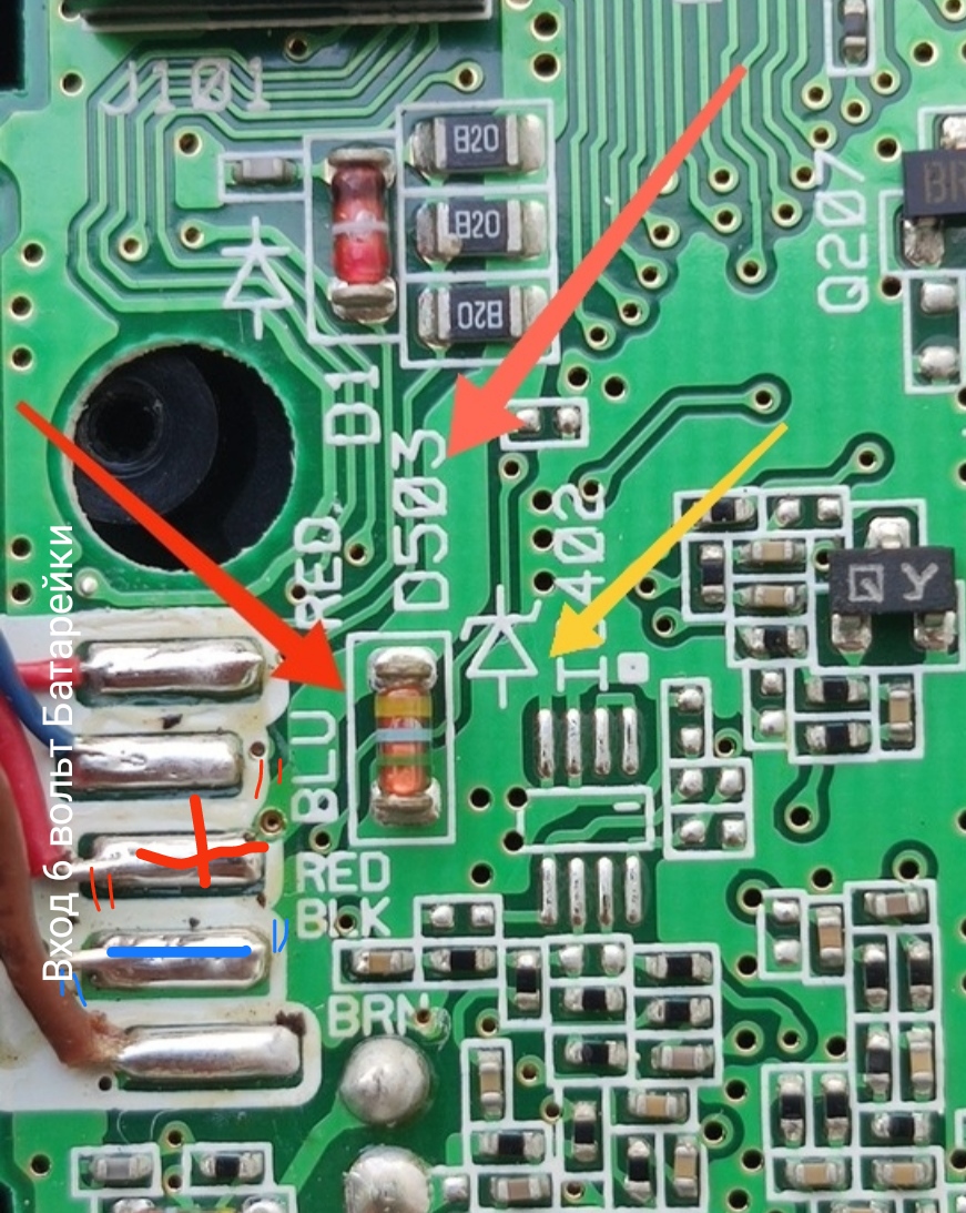 Сама деталь на не рабочей станции греется моментально за 3 секунды достигает порядка более 80 градусов, повышается потребление тока не свойственно нормальному режиму работы с 0,023 до почти 0.3 А и напряжение просаживается с 5,8 вольт до 4,1 вольта. Потом вскоре станция выключается вскоре вообще. Сопротивление на детали около 70 ом с обоих сторон. На аналогичной детали другой полностью исправной рации с одной стороны 400 ом с другой стороны бесконечность.