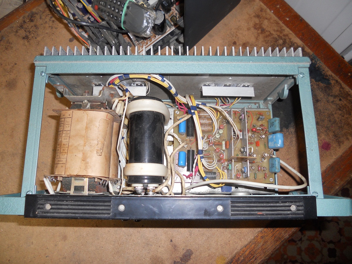 | Есть там КТ818ГМ или КТ819ГМ (крепеж с них еще не снимал) но это они, и кондеры стоят такие по 10000, и диодная сборка есть, если припомнишь хотя-бы год *Радио* , пересмотрю . |