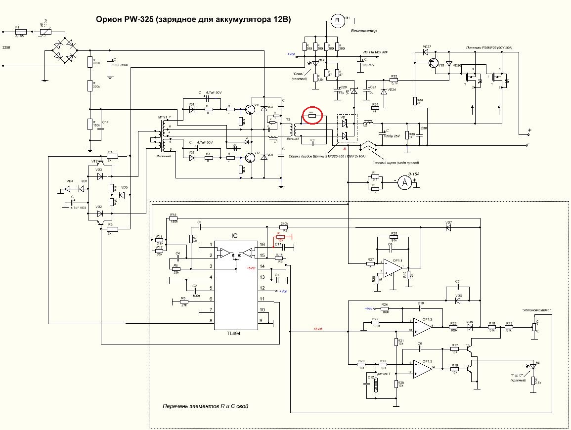 | нужна схема зарядного устройства орион pw 265 или 325 |
