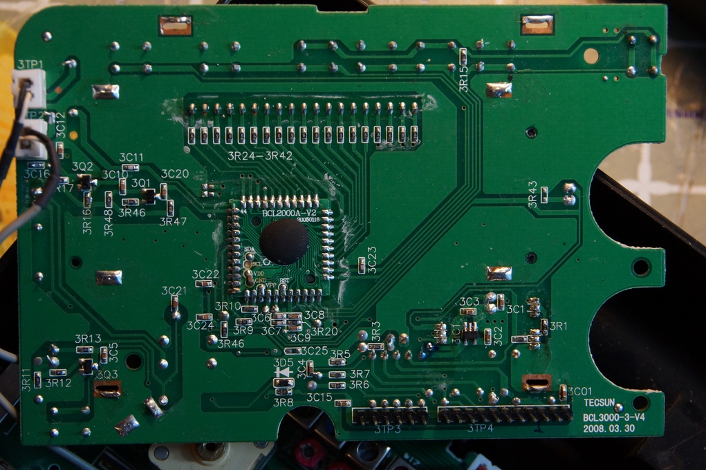 Надёга угасла, не ищи, нет её, ни надёги, ни схемы. Да еще и "клякса" под названием контроллер, реанимации не подлежит, суши весла, девайс в помойку. Хотя можешь прогреть, терять то нечего.