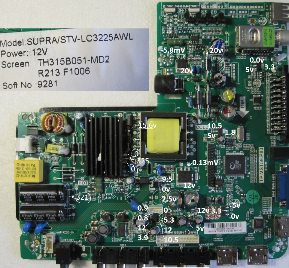 питание на t-con есть. по шлейфам до подсветки 20v доходит