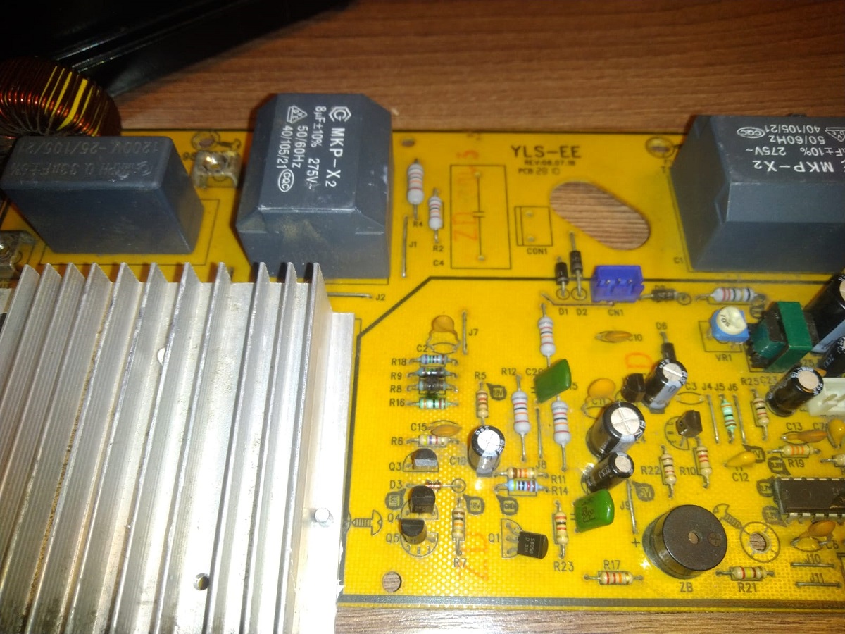 Всем привет! Очень нужна схема или фото платы индукционной плитки YLS-EE (gorenje ic2000sp) со стороны компонентов. Выгорели 2 сопротивления, требуется опознание. Выручайте пожалуйста!!! фото в гугле все мутные, ничего не разобрать. Лучше конечно если схема есть, т.к. один резик стоит под радиатором.  |